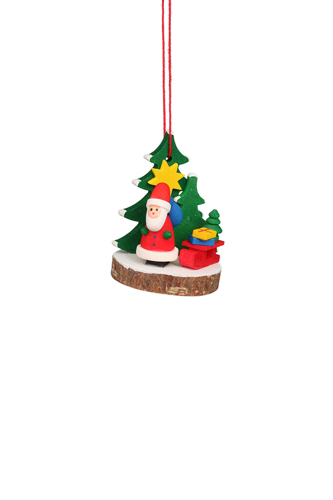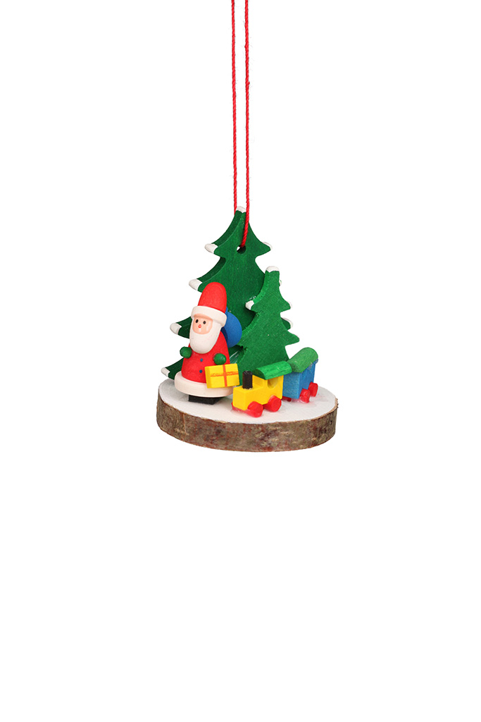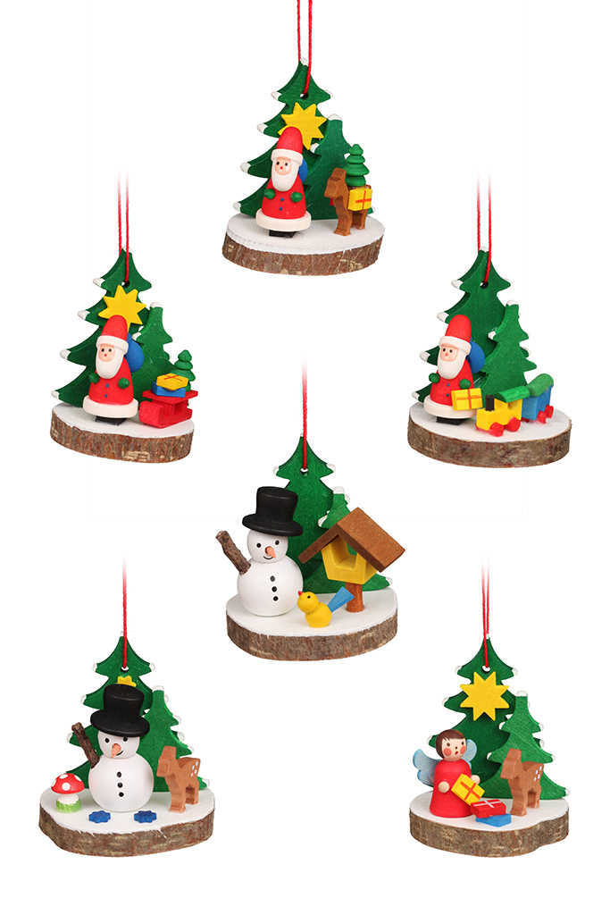 Auf rustikalen Baumscheiben warten weihnachtliche Figuren darauf Ihr Heim zu verschönern.