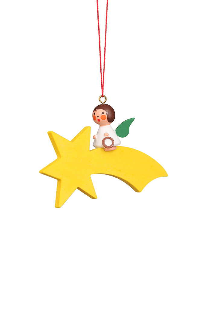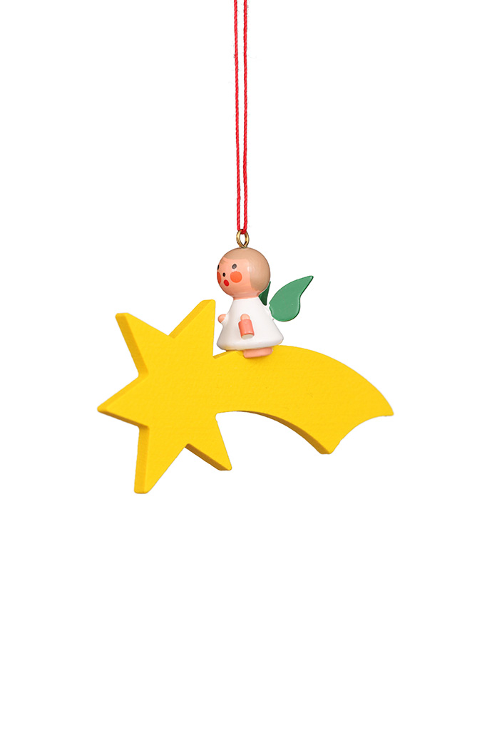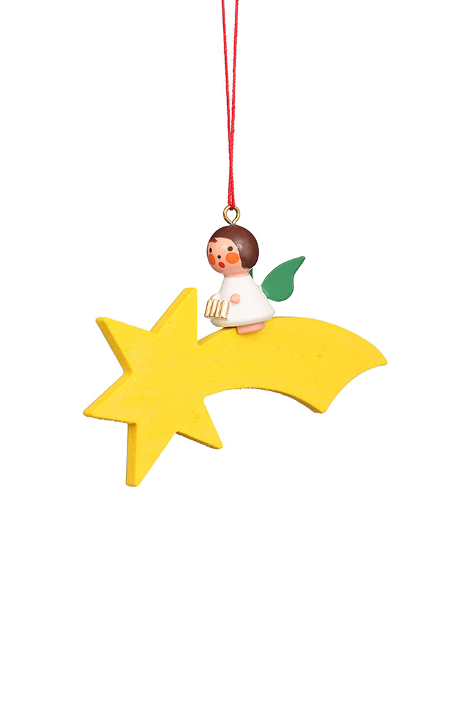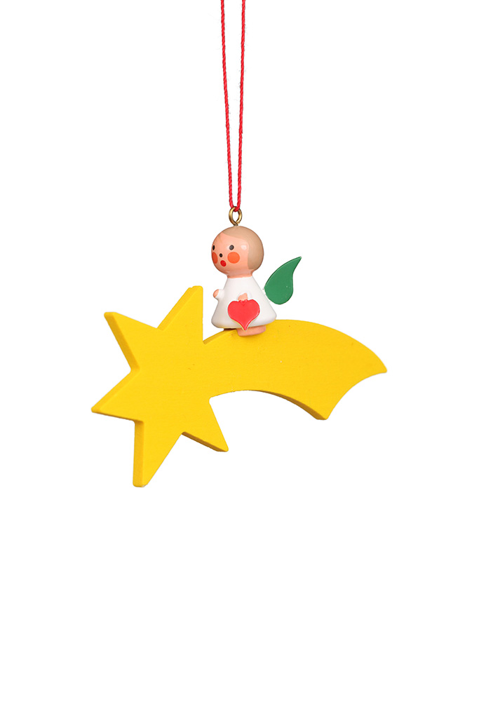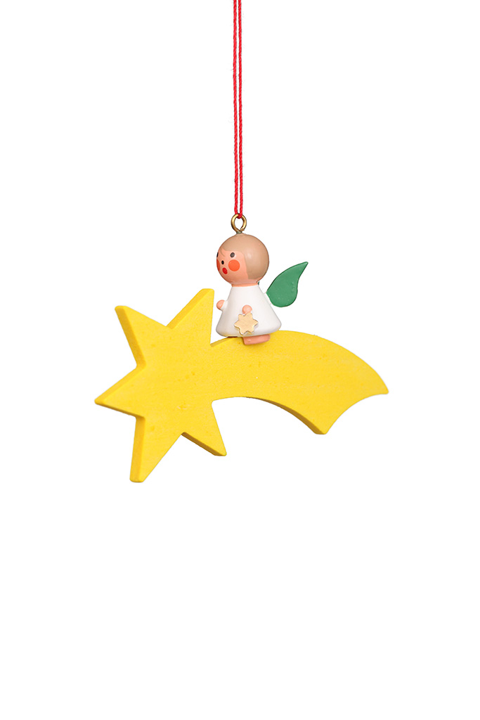 Auf einem gelben Komet kommt der kleine Engel geflogen. Er hat es eilig, bringt den Menschen Liebe und Frieden.