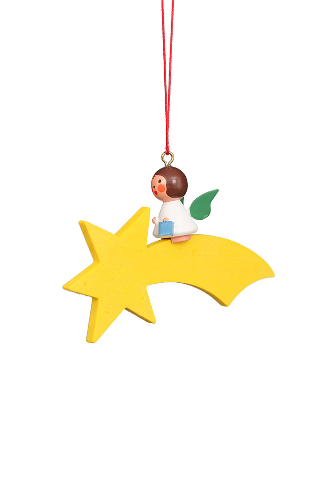 Auf einem gelben Komet kommt der kleine Engel geflogen. Er hat es eilig, bringt den Menschen Liebe und Frieden.