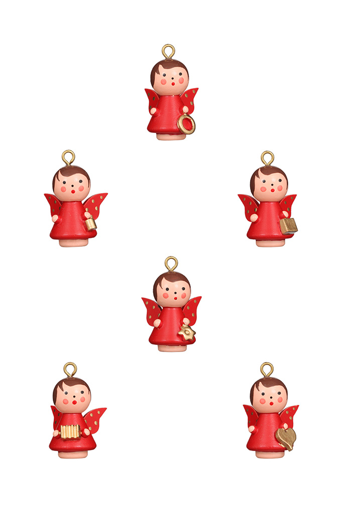 Diese hübschen weinroten Engel mit den braunen Haaren tragen kleine Geschenke mit sich.
