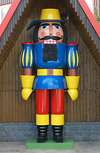 Leider hinterlassen Zeit und Witterung immer wieder unschöne Spuren auf unserem Nussknacker, so dass er in regelmäßigen Abständen gewartet und in Stand gesetzt werden muss. - Was bei einer Figur derartiger Größe mit einem gewissen Aufwand verbunden ist.